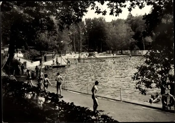 Ansichtskarte, Postkarte, Badeanstalt, Schwimmbad, Freibad, Strandbad, Volksbad