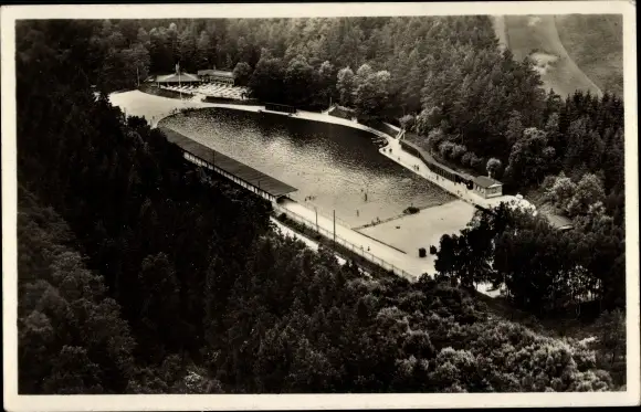 Ak Rastenberg in Thüringen, Waldschwimmbad, Vogelperspektive