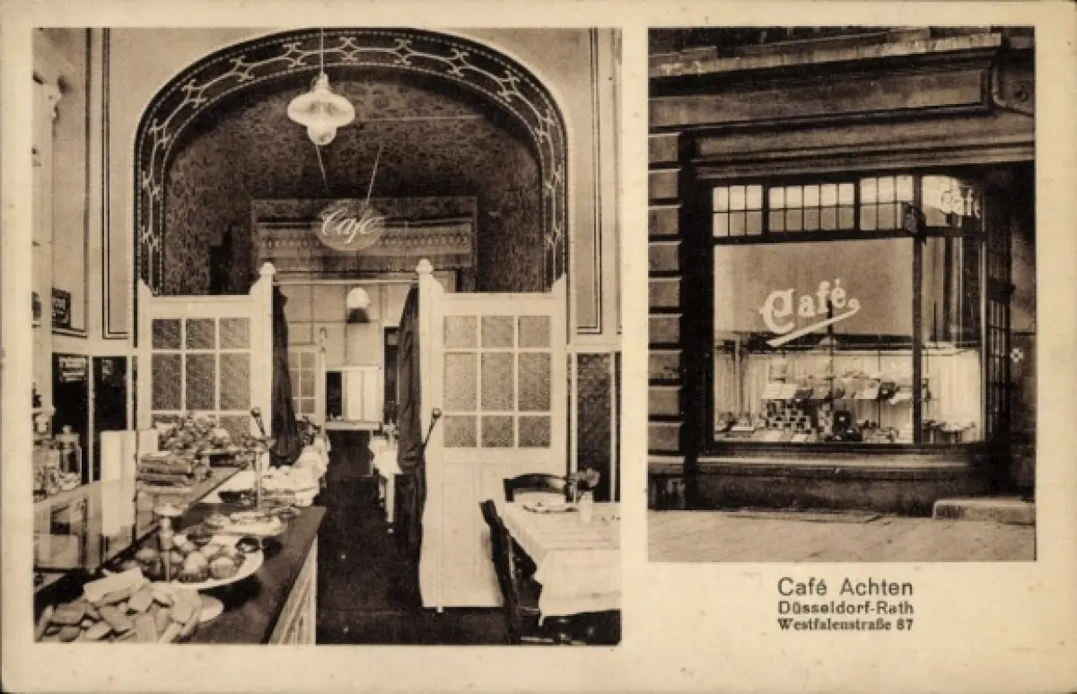 Ak Rath Düsseldorf am Rhein, Café Achten, Westfalenstraße 87, Innenansicht