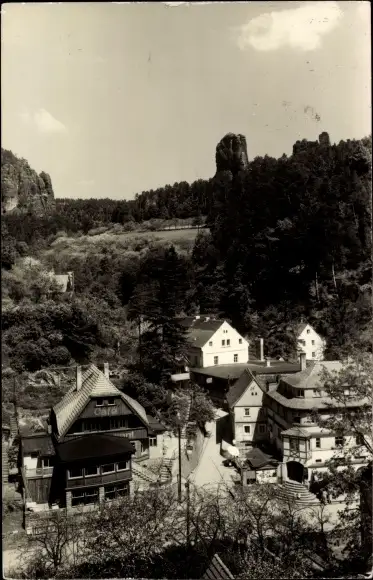 Ak Rathen an der Elbe Sächsische Schweiz, Amselgrund mit Talwächter