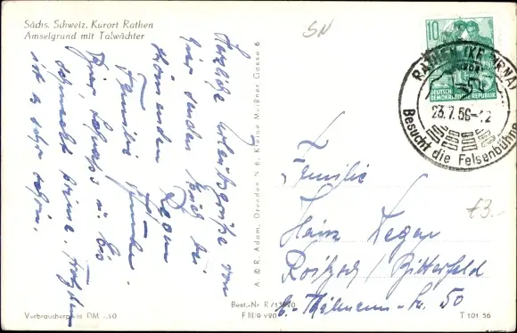 Zustand, siehe Scan, gelaufen, 1956 - ca 9 cm X 14 cm