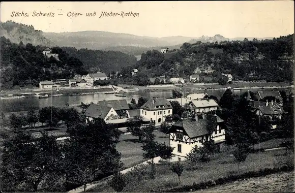 Ak Rathen an der Elbe Sächsische Schweiz, Blick auf den Ort