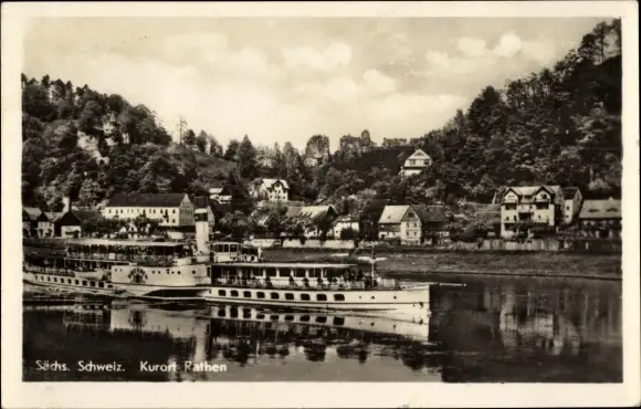 Ak Rathen an der Elbe Sächsische Schweiz, Dampfer, Ortsansicht