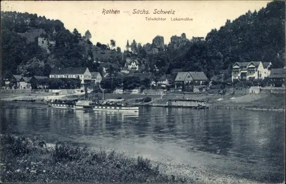 Ak Rathen an der Elbe Sächsische Schweiz, Talwächter Lokomotive