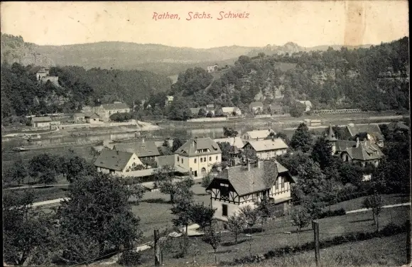 Ak Rathen an der Elbe Sächsische Schweiz, Teilansicht