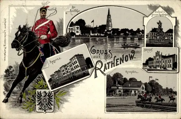 Ak Rathenow im Havelland, Bahnhof, Kaserne, Denkmal, Haveltor, Rennplatz