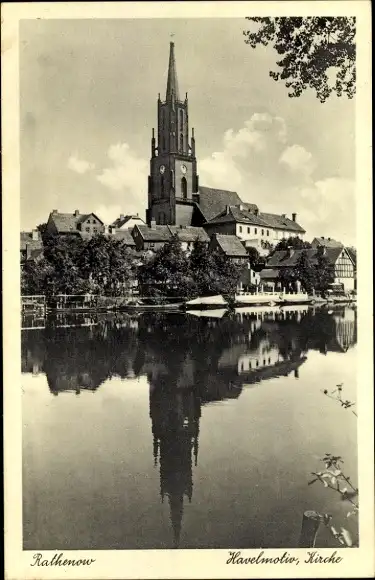 Ak Rathenow im Havelland, Havelpartie, Kirche