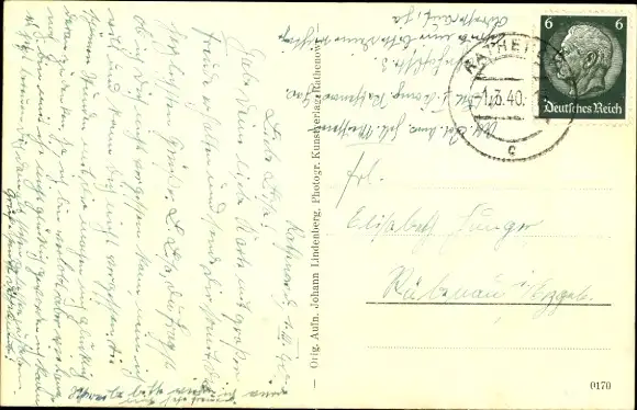 Zustand, siehe Scan, gelaufen, 1940 - ca 9 cm X 14 cm