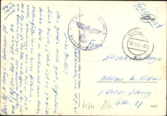 Zustand, siehe Scan, gelaufen, 1941 - ca 15 cm X 11 cm