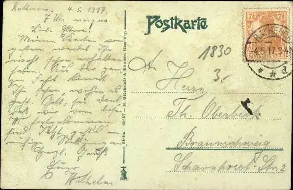 Zustand, siehe Scan, gelaufen, 1917 - ca 14 cm X 9 cm