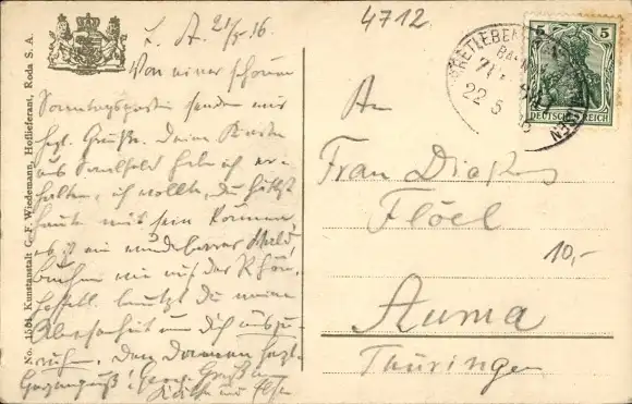 Zustand siehe Scan, 1916, gelaufen - ca 14 cm X 9 cm