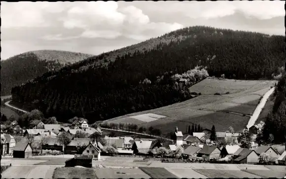 Ak Rattlar Willingen Waldeck, Blick zum Ort, Felder, Wälder