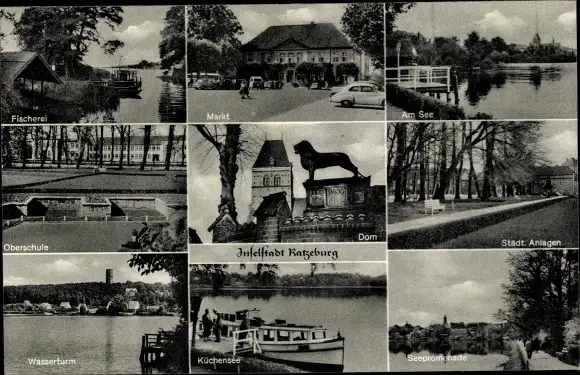 Ak Ratzeburg im Herzogtum Lauenburg, Markt, Seepromenade, Städt. Anlagen, Wasserturm, Oberschule