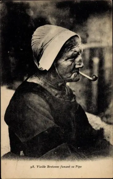 Ak Rauchende Frau in bretonischer Tracht