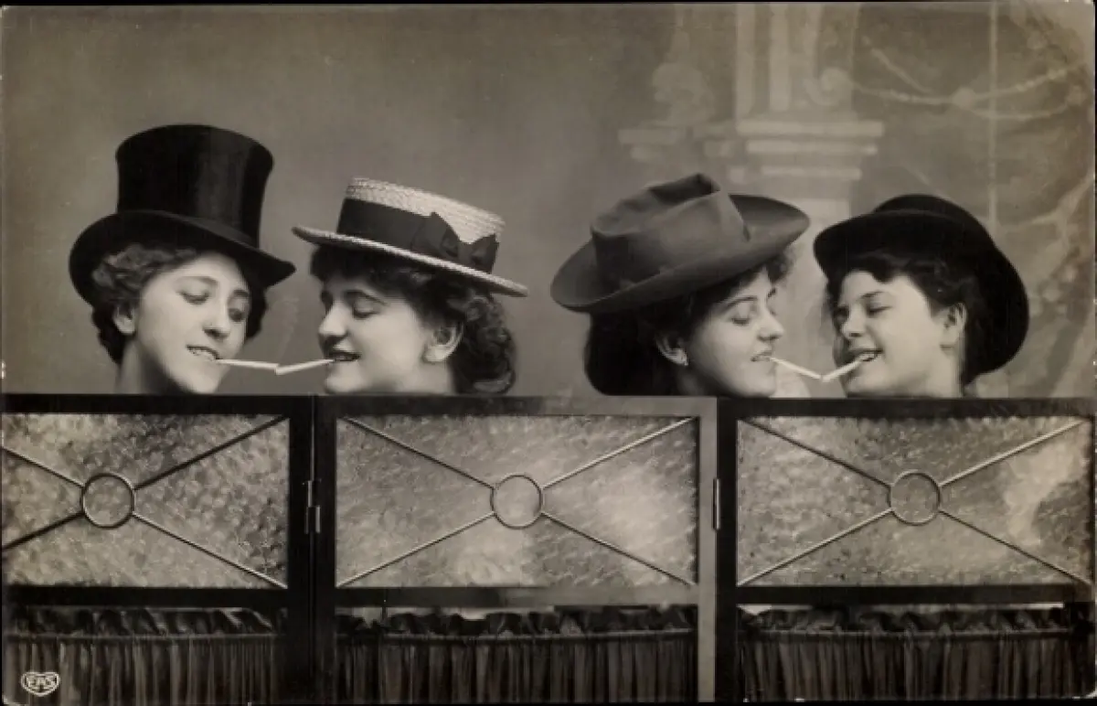 Ak Rauchende Frauen, Zigaretten, Hüte