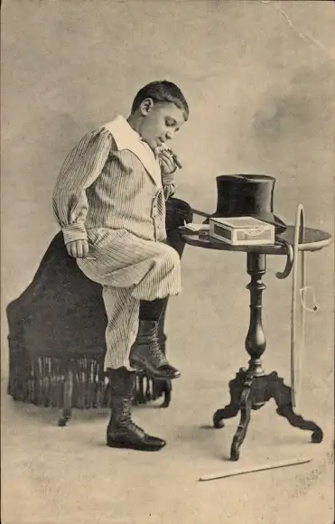 Ak Rauchender Junge, Hut, Zigarette, Tisch