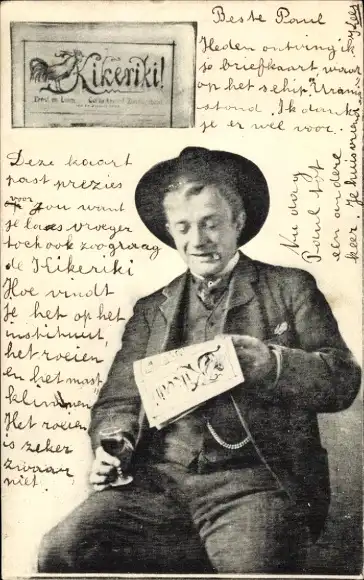 Ak Rauchender Mann liest eine Zeitung, Weinglas