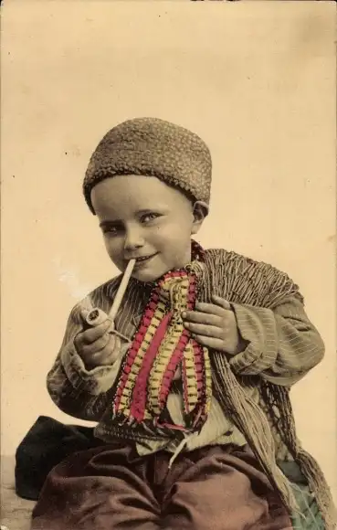 Ak Rauchendes Kind, Junge in Tracht, Pfeife