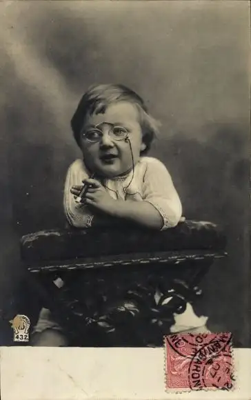 Ak Rauchendes Kind, Junge mit Zigarette, Brille