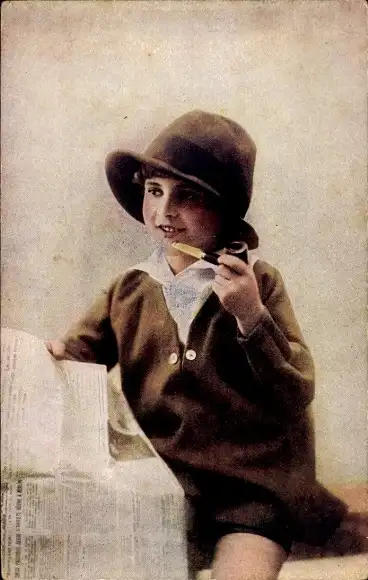 Ak Rauchendes Kind, Pfeife, Zeitung