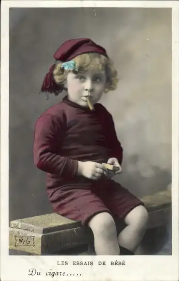 Ak Rauchendes Kind, Portrait, Zigarette, Streichholz