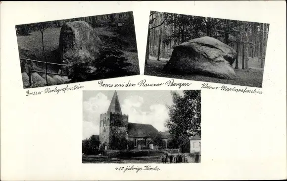 Ak Rauen in der Mark, Großer Markgrafenstein, Kleiner Markgrafenstein, 400 jährige Kirche