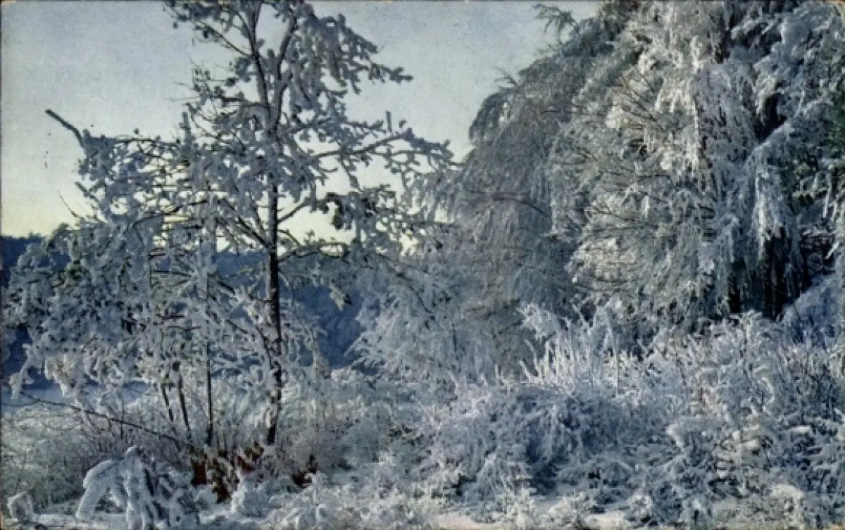 Ak Raureifstudie, Winterlandschaft