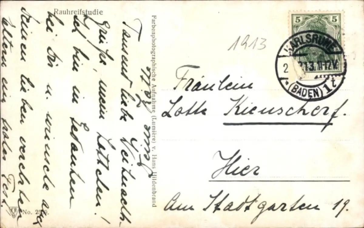 Zustand siehe Scan, gelaufen, 1913 - ca 14 cm X 9 cm