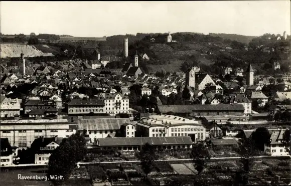 Ak Ravensburg in Württemberg Oberschwaben, Totalansicht der Ortschaft