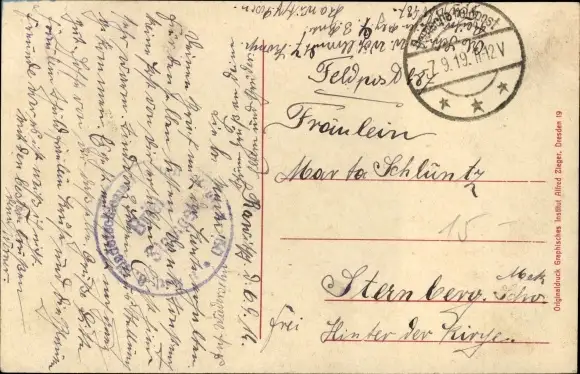 Zustand, siehe Scan, gelaufen, 1919 - ca 14 cm X 9 cm