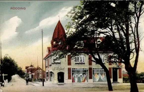 Ak Rødding Rödding Dänemark, Straßenpartie, Geschäft
