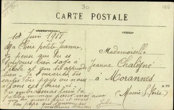 ungelaufen, Rückseite beschrieben, datiert 1918, sehr guter Zustand
