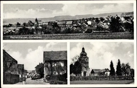 Ak Reckershausen im Hunsrück, Gesamtansicht, Kirche, Straßenpartie