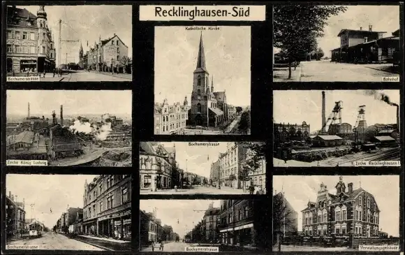 Ak Recklinghausen Süd, Kath. Kirche, Bahnhof, Zeche König Ludwig, Zeche Recklingh. I, Bochumer Str.
