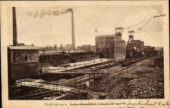 Ak Recklinghausen, Zeche Blumental, Schacht III und IV