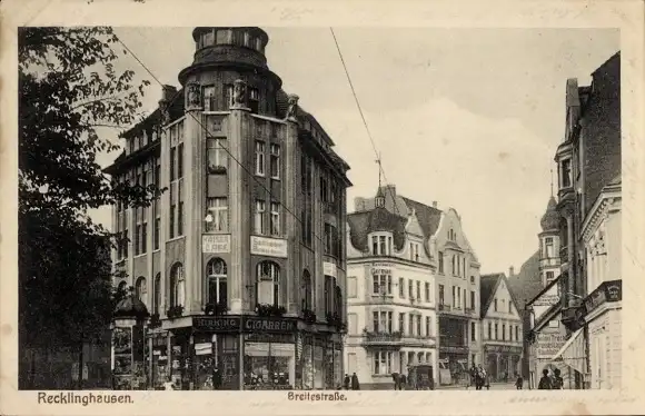 Ak Recklinghausen im Ruhrgebiet, Breitestraße, Zigarrengeschäft, Kaiser-Café, Litfaßsäule