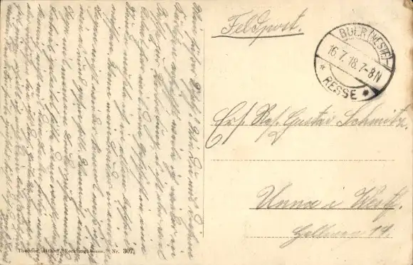 Zustand, siehe Scan, gelaufen, 1918 - ca 14 cm X 9 cm