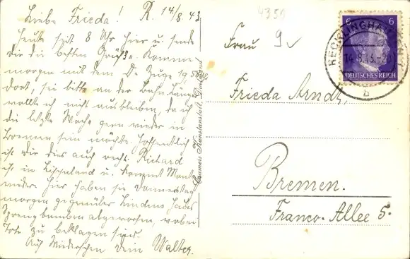 Zustand, siehe Scan, gelaufen, 1943 - ca 14 cm X 9 cm