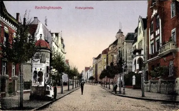 Ak Recklinghausen im Ruhrgebiet, Hedwigstraße, Litfaßsäule