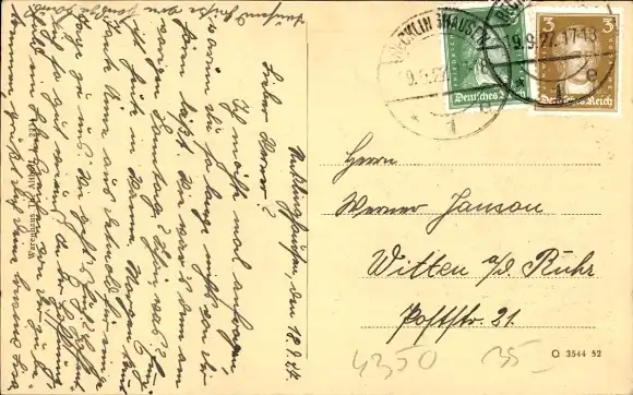 Zustand, siehe Scan, gelaufen, 1927 - ca 14 cm X 9 cm