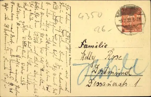 Zustand, siehe Scan, gelaufen, 1922 - ca 14 cm X 9 cm