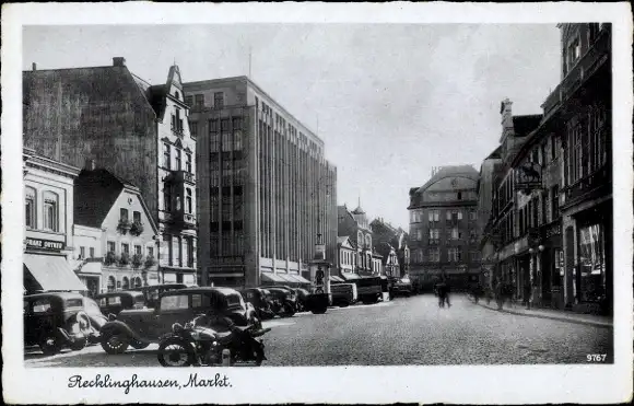 Ak Recklinghausen im Ruhrgebiet, Markt, Motorrad