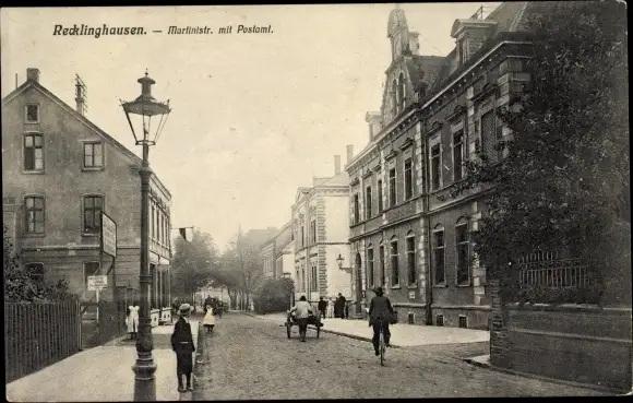 Ak Recklinghausen im Ruhrgebiet, Martinistraße mit Postamt