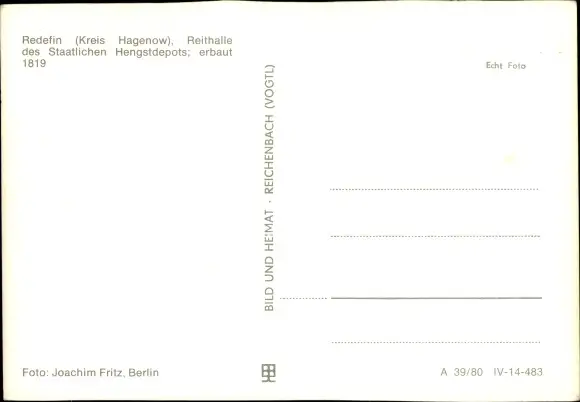 Ak Redefin Landkreis Ludwigslust Parchim, Blick zur Reithalle des staatlichen Hengstdepots
