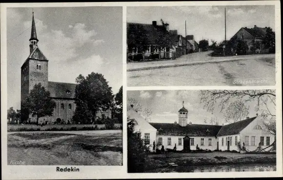 Ak Redekin Jerichow an der Elbe, Kirche, Straßenansicht, Schloss