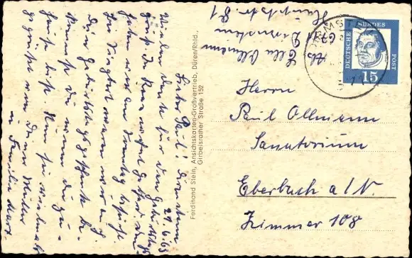 Zustand, siehe Scan, gelaufen, 1963 - ca 14 cm X 9 cm