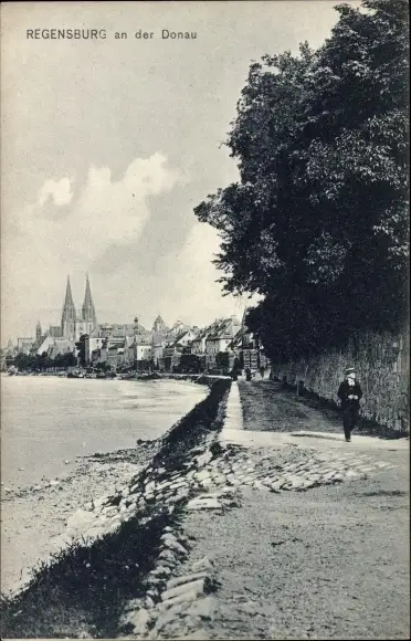 Ak Regensburg an der Donau Oberpfalz, Blick zur Stadt, Uferpartie