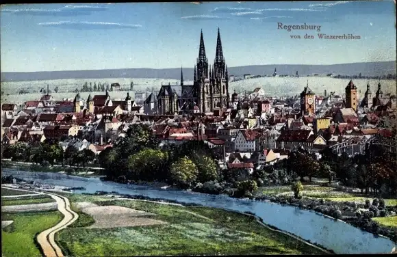 Ak Regensburg an der Donau Oberpfalz, von der Winzererhöhen, Kirche