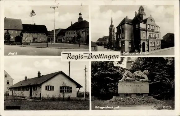 Ak Regis Breitingen Sachsen, Markt, Rathaus, Kirche, Kriegerdenkmal