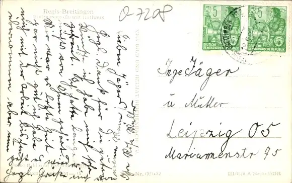 Ak Regis Breitingen Sachsen, Rathausstraße mit Rathaus